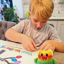 A soft, friendly presence your child can hold and keep close2. Scan the QR code